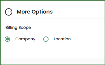 If you have multiple locations, you can choose to bill at the company level (one credit card, one charge, all locations) or the location level (several credit cards, separate charge per location). To change this option, click on the gear icon then Company Profile and scroll to More Options.