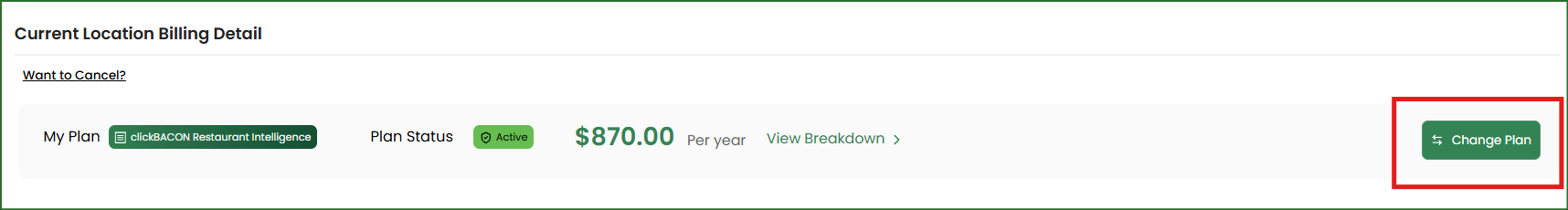 2. Click on the green CHANGE PLAN button.